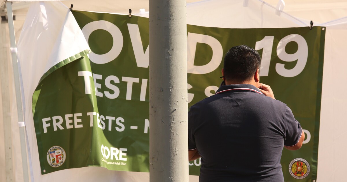 Both statewide and in L.A. County, average daily coronavirus cases have quadrupled in recent weeks, and hospitalizations have tripled. COVID-19 deaths per day are also significantly up — tripling in L.A. County and close to doubling statewide in recent weeks.