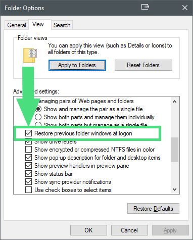 Re-open previous File Explorer windows on boot with Windows 10 - Poc Network